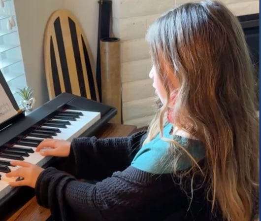 Continued with piano lessons—listen to this (click on photo)!