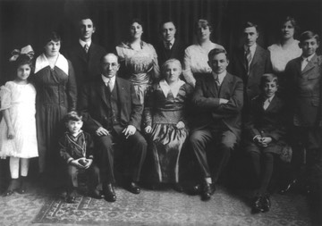 The first photo is a copy of an old extended family photo from 1917, showing the Brick, Karpeles and Sittig families. Ida (née Karpeles) Brick was Elsie (née Brick) Coff’s mother, and can also be seen with her in #30 and in #38. Elsie also appears in #23. It is not clear who the Sittigs were in the family.