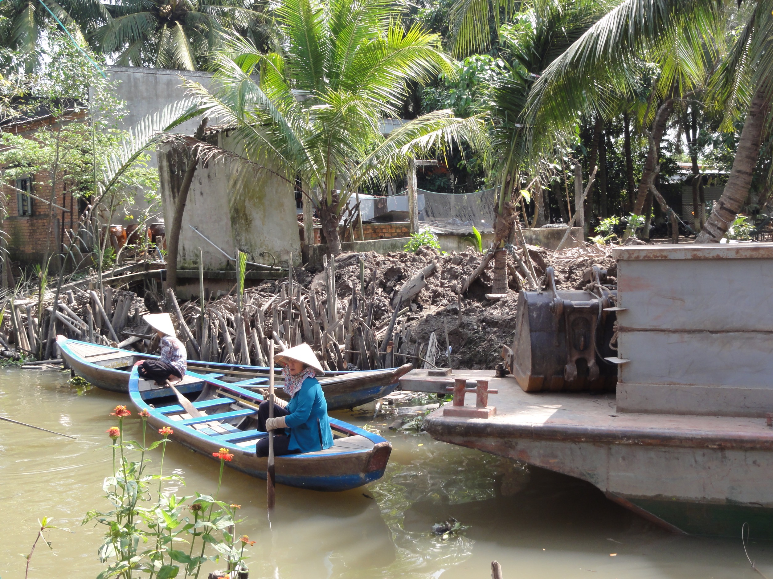 On our second day in Saigon we drove out to the countryside (many rice fields) to the Mekong River delta, caught a boat that sailed up the river to one of the many islands where thousands of people live and work (fishing, honey production, coconut products). Many of the islands are laced with canals and we took a ride in a sampan through some of these. Very “Apocalypse Now” (look it up, future generations).