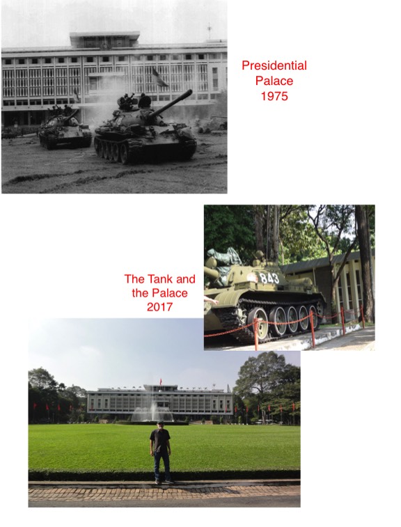 The Presidential Palace is the one that was crashed into in 1975 by the North Vietnamese Army tanks, an act that effectively marked the end of America’s military involvement in that country.
