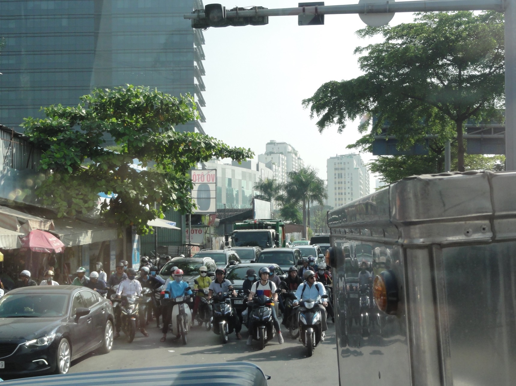 Saigon is 12 million people and 7 million motor scooters, all of which seem to be on the roads at the same time.