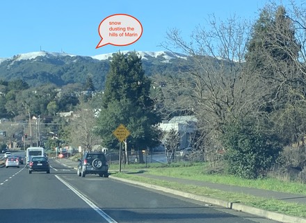 The last snow of significance in Marin County was in 1976; Ira was there too.