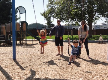 …swinging in the park with cousin Kaia (pushed by brother and sister)…
