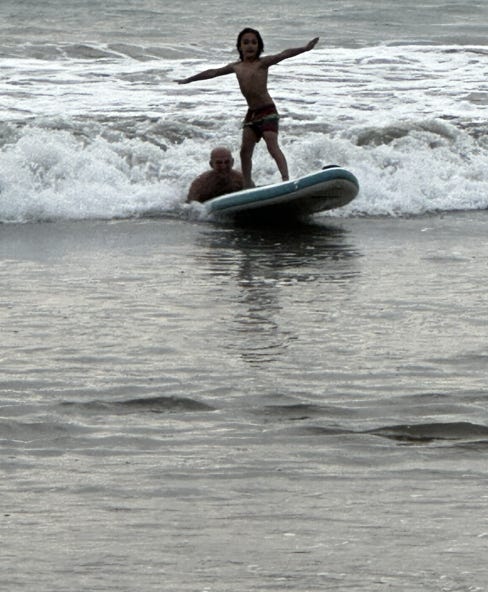 Elijah catches some waves with Uncle Jeremy.
