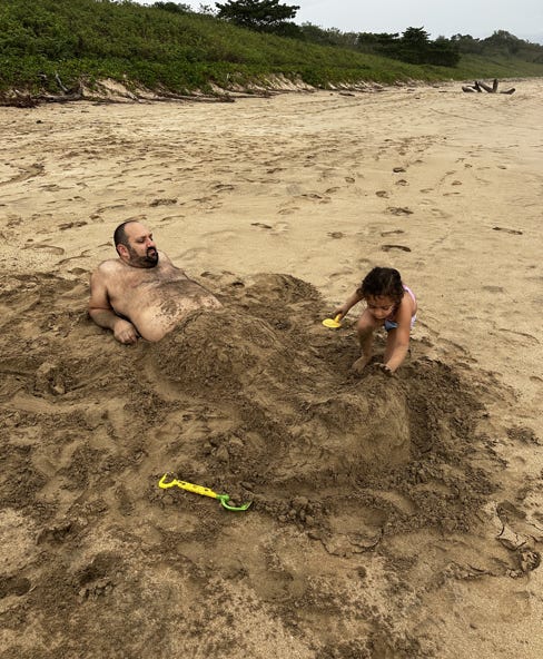Violet buries Joe with mermaid legs.