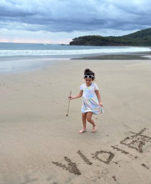 Violet lays claim to the beach in her name.