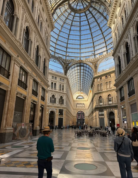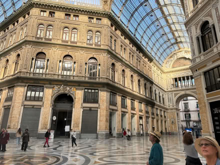 We did a walking tour. The port lets you out smack dab in the city center so you don't have to go far. We visited an incredible Galleria that Umberto the First built in 1890. High glass domed ceilings, marble floors. Absolutely beautiful. Yes there are shops in it now. All of this is across the street from the opera house, which is adjacent to the old palace. It is the only place in Naples with a cannon pointing towards the populace and not the sea. Rulers feared the people more than invaders.