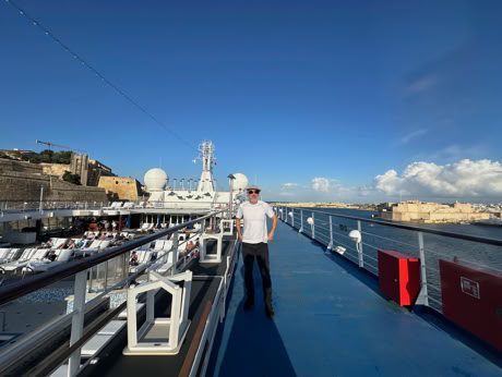 A warm but windy day as we docked in Valleta, Malta; a country on its own. Sailing into the port, the city looks like an old crusader's walled fortress. Which it was at one time.