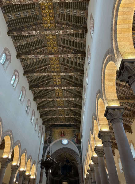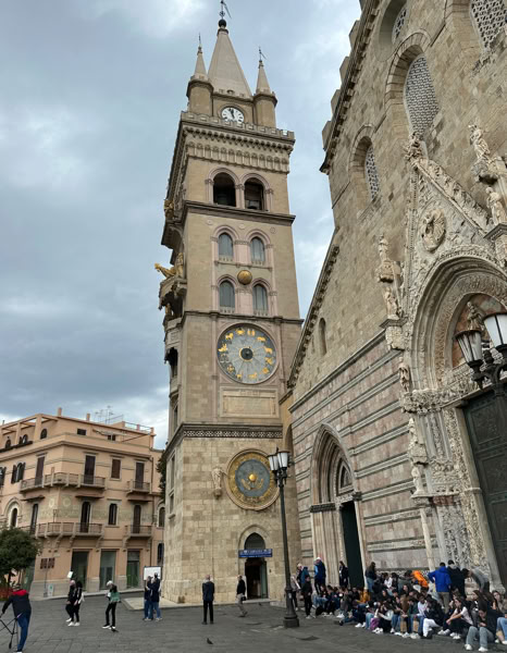 The day clouded over but the rain did not start until we returned to the ship. Messina looks to be densely populated by the housing and it does have 250,000 people; third largest city in Italy. Much of the town was leveled in a massive earthquake in 1908. The church on the famous clock tower square was originally built by Normans, Arabs and Christians, a real multicultural undertaking. The reconstruction is quite true and accurate to the original. This church also has a 16,000 (!) pipe organ. We did not get to hear it.