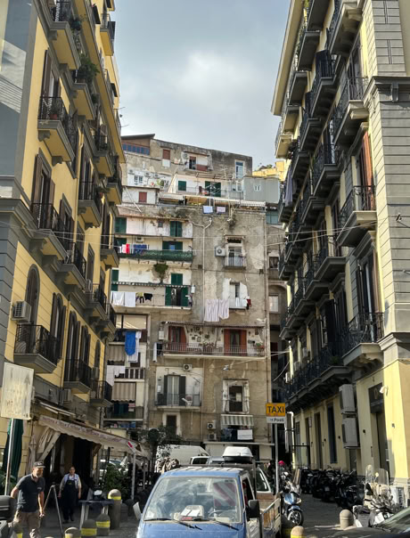 Naples. A big city with cultural influences. Interestingly, because of the heavy Allied bombing in 1943, most of the city was rebuilt in the 1950's and '60s, but built to look like the old stuff.